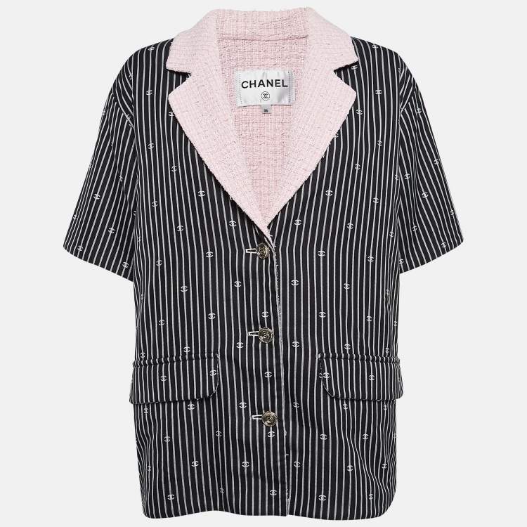 Pre Owned Chanel Black/Pink CC Stripe Cotton Tweed Trim Jacket S