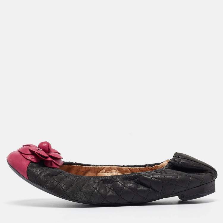 Chanel Black/Pink Quilted Leather Camelia Scrunch Ballet Flats Size 39