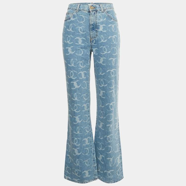 Pre Owned Chanel Blue CC Pattern Denim Sequin Pocket Jeans M/Waist 28"