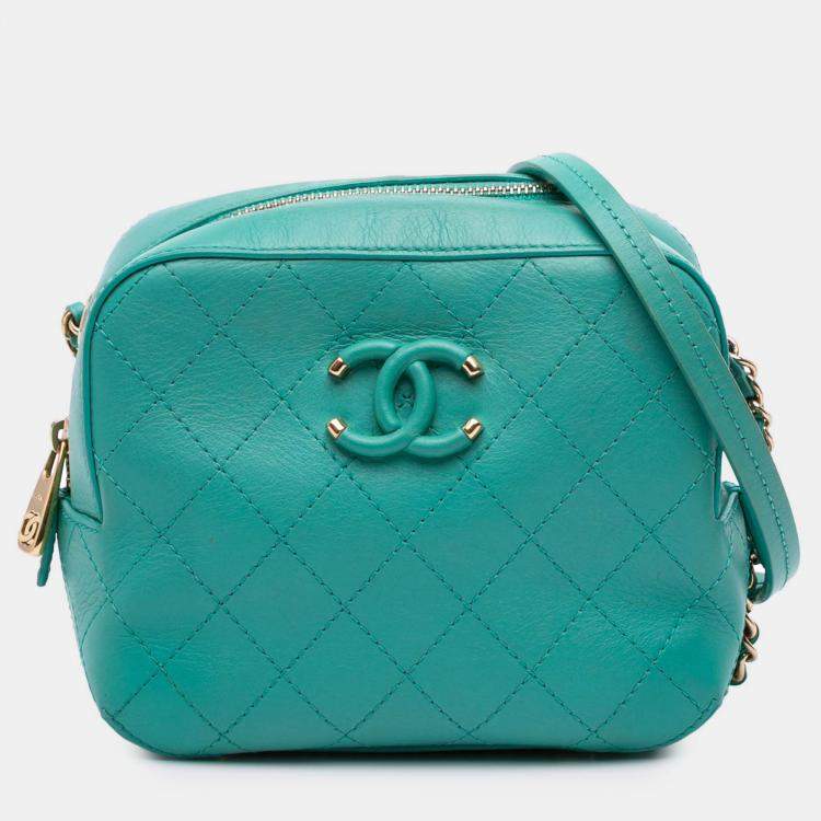 Chanel Blue CC Stitched Calfskin Enamel Camera Bag