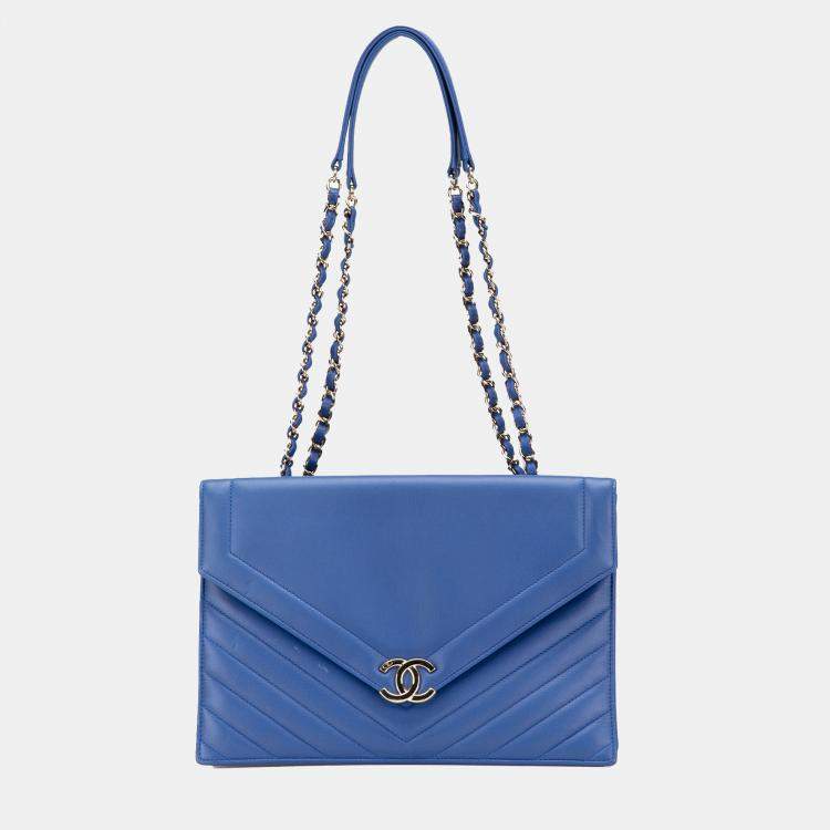 Chanel Blue Chevron Calfskin Coco Envelope Shoulder Bag