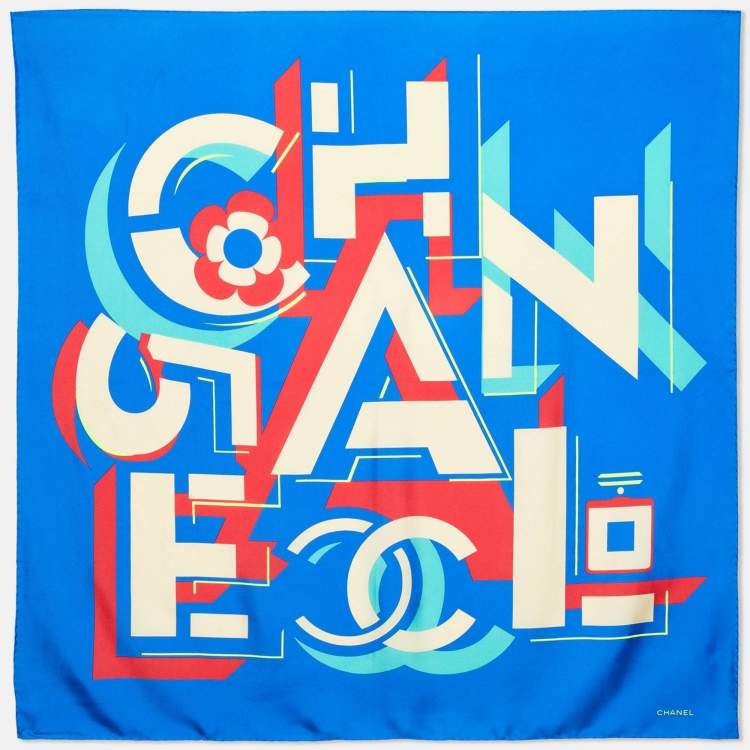 Chanel Blue Geometric Logo Print Silk Square Scarf