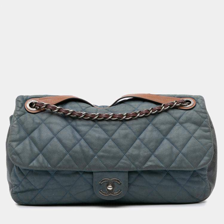 Chanel Blue Jumbo Iridescent Calfskin In The Mix Flap
