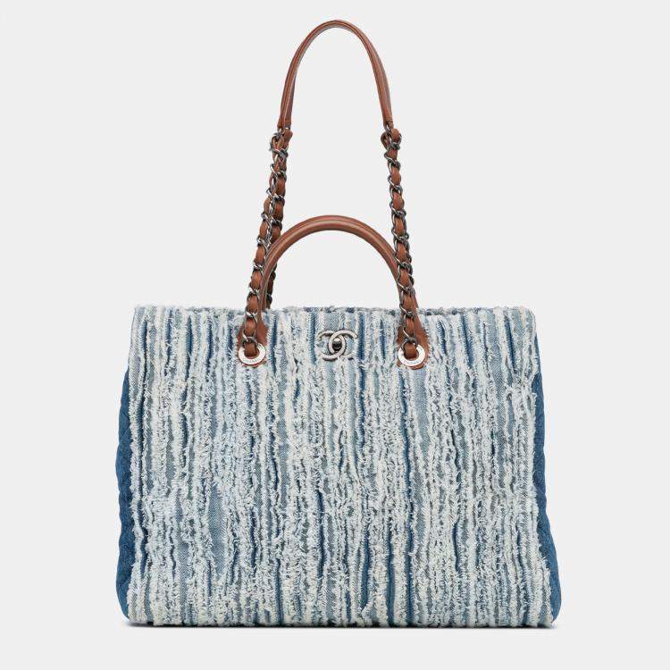 Pre Owned Chanel Blue Large Fringed Denim Shopping Tote