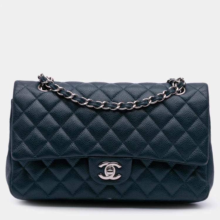 Pre Owned Chanel Blue Medium Classic Caviar Double Flap