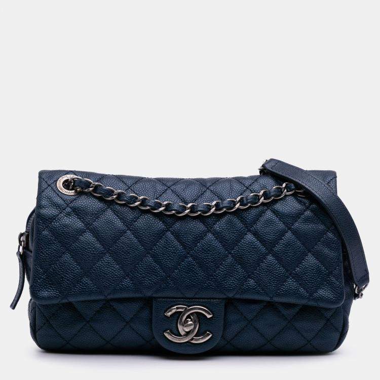 Chanel Blue Medium Quilted Iridescent Caviar Easy Flap