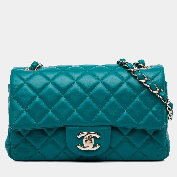 Chanel Blue Mini Rectangular Classic Lambskin Single Flap Shoulder Bag