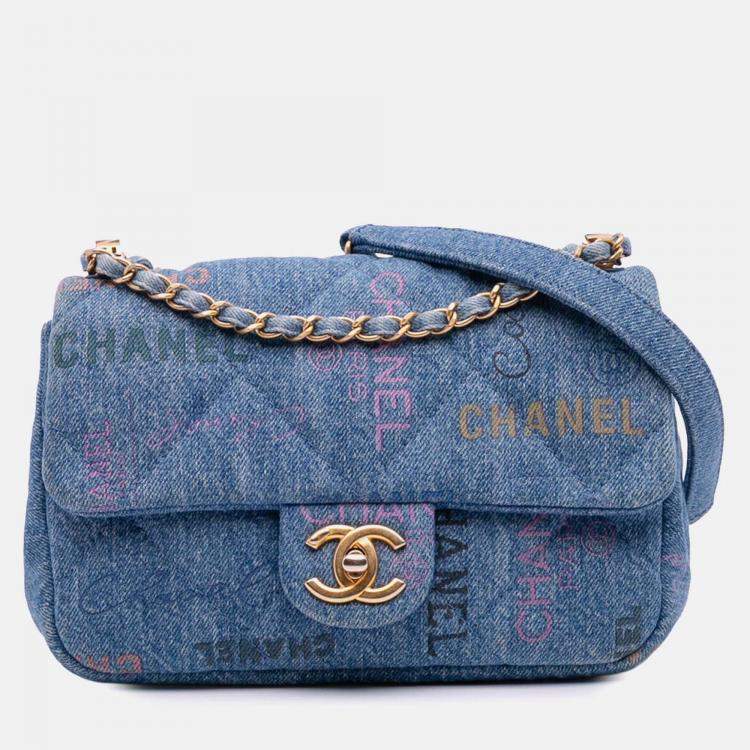 Chanel Blue Mini Rectangular Quilted Denim Mood Flap