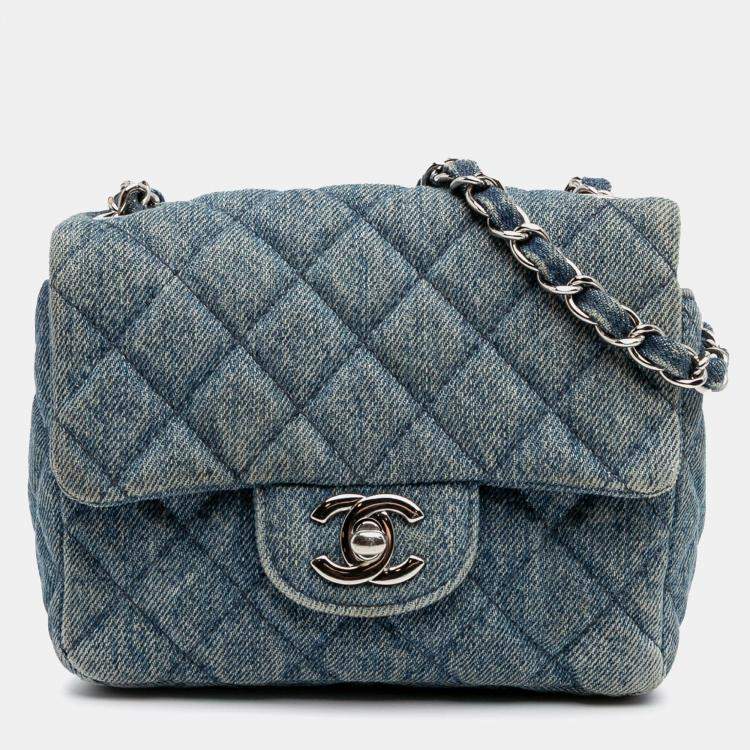 Chanel Blue Mini Square CC Quilted Denim Single Flap