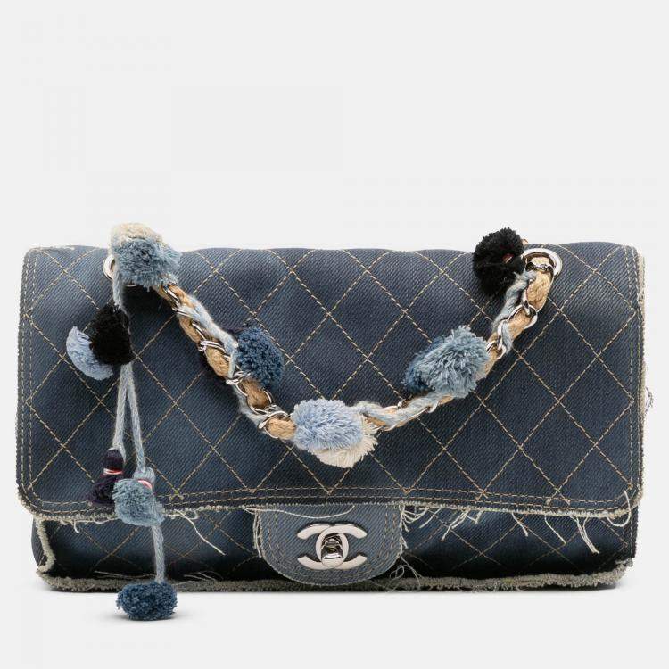 Chanel Blue Paris Dubai Medium Quilted Denim Pompom Flap