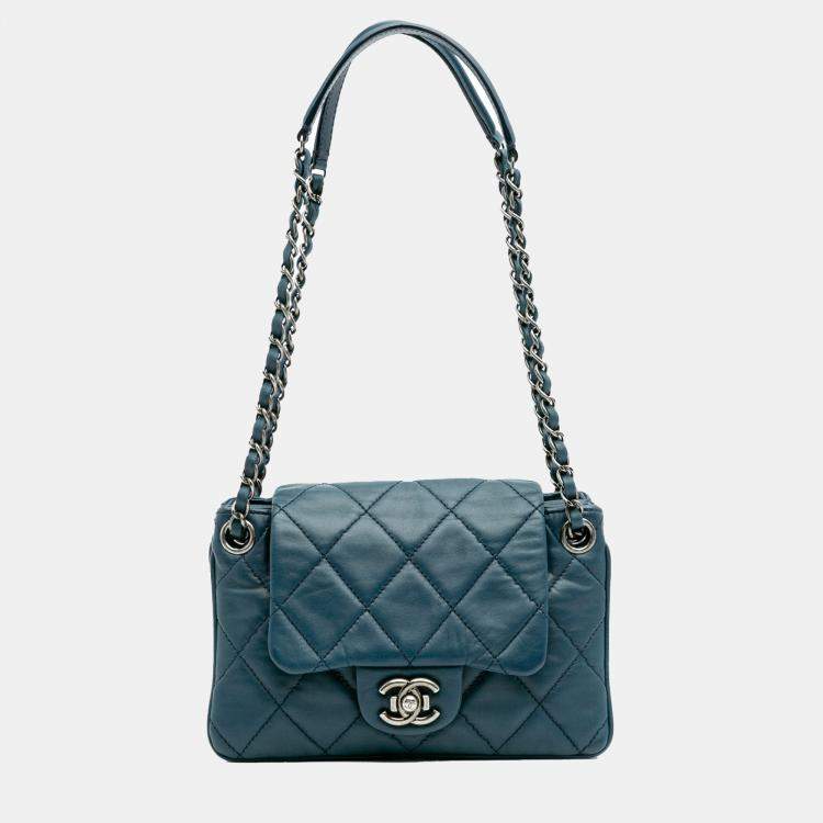 Pre Owned Chanel Blue Quilted Lambskin Accordion Flap