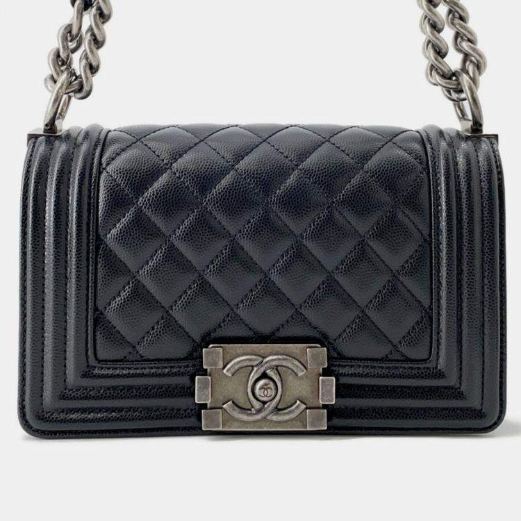 Pre Owned Chanel Boy Black Calfskin Shoulder Bag