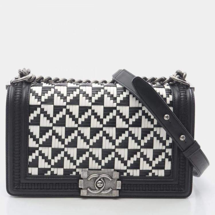 Chanel Boy Black White Lambskin Leather Shoulder Bag