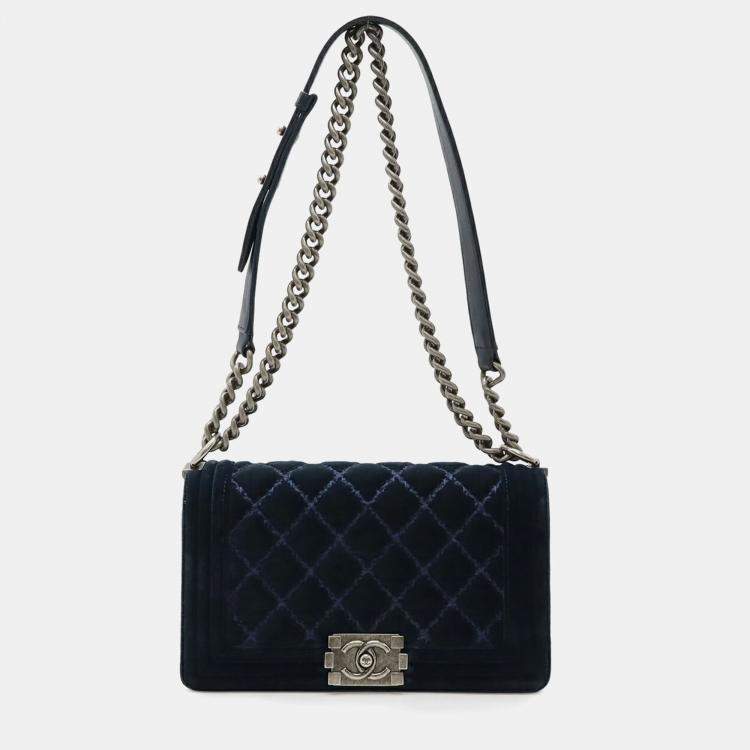 Chanel Boy Navy Velour Chain Shoulder Bag
