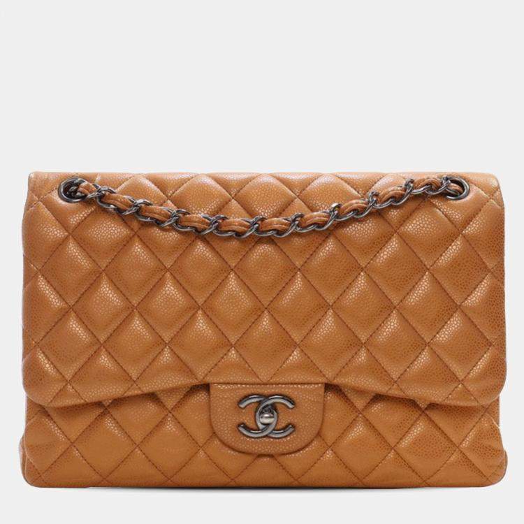 Pre Owned Chanel Brown Jumbo Classic Iridescent Caviar Double Flap