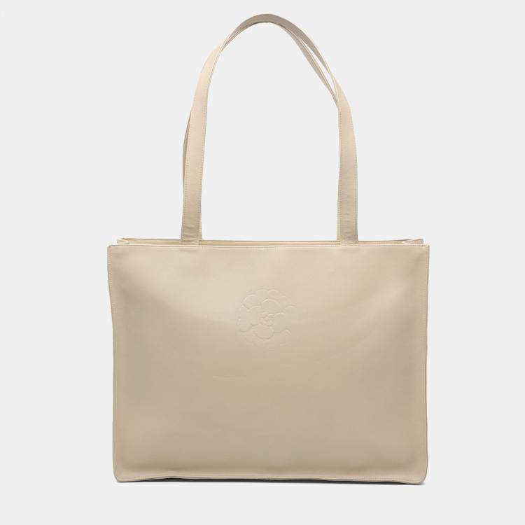 Chanel Brown Lambskin Embossed CC Camellia Tote