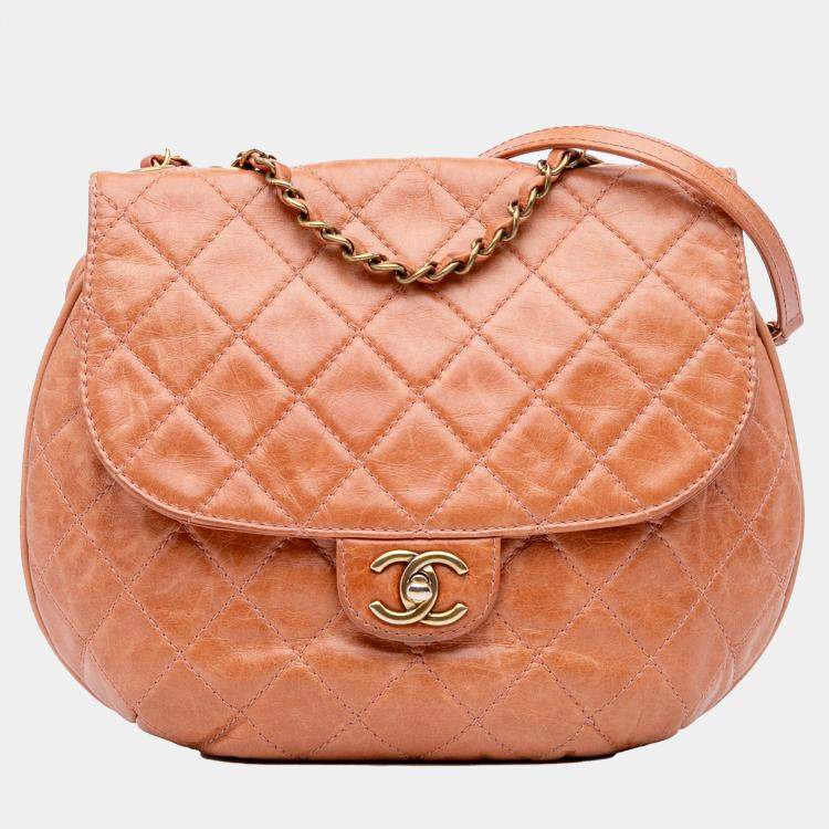 Pre Owned Chanel Brown Medium Aged Calfskin Bubble CC Flap