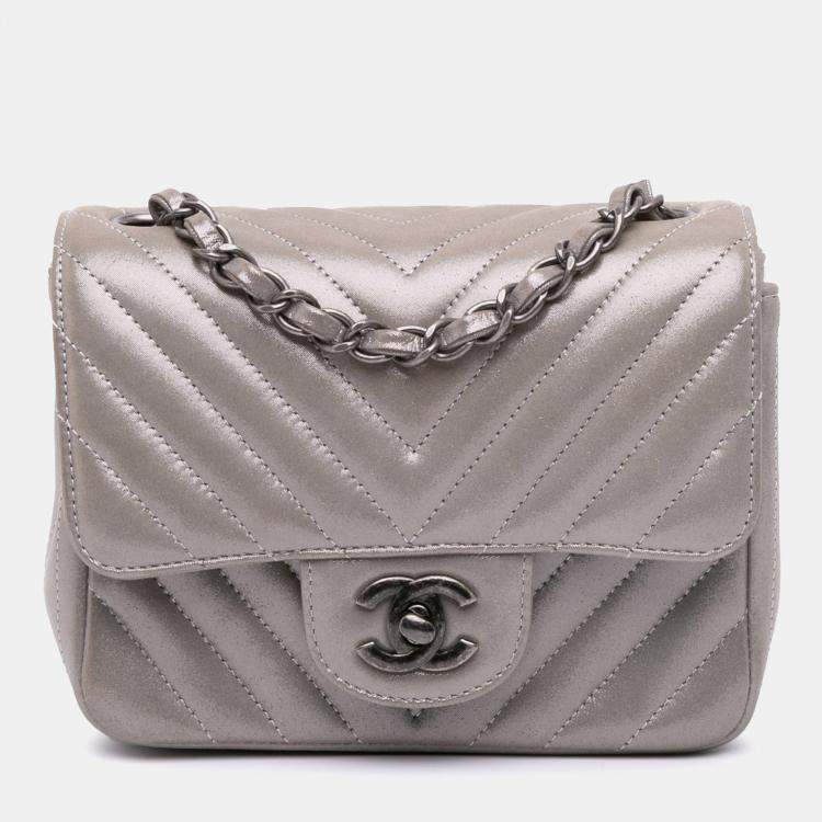 Chanel Brown Mini Square Classic Chevron Iridescent Calfskin Single Flap