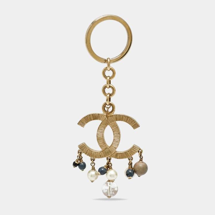 Chanel CC Beads Faux Pearl Gold Tone Key Chain