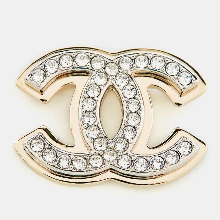 Chanel CC Crystal Two Tone Brooch