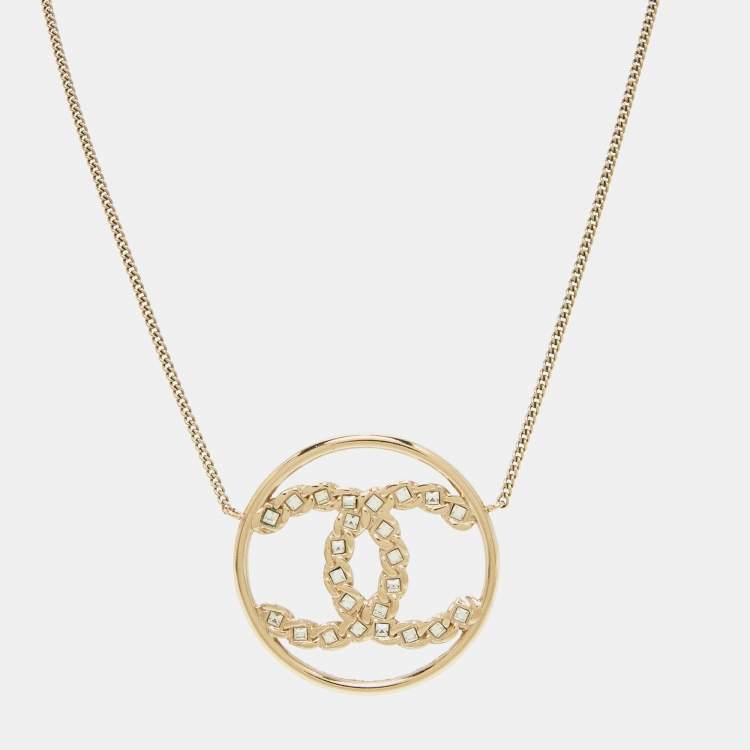 Pre Owned Chanel CC Crystals Gold Tone Necklace