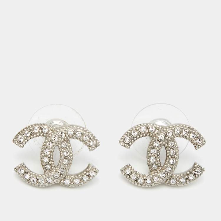 Pre Owned Chanel CC Crystals Silver Tone Stud Earrings