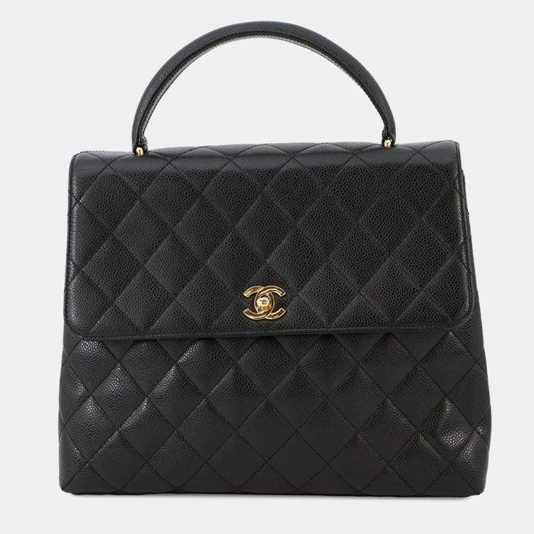 Pre Owned Chanel Cc Logo Handbag Black Caviar Leather