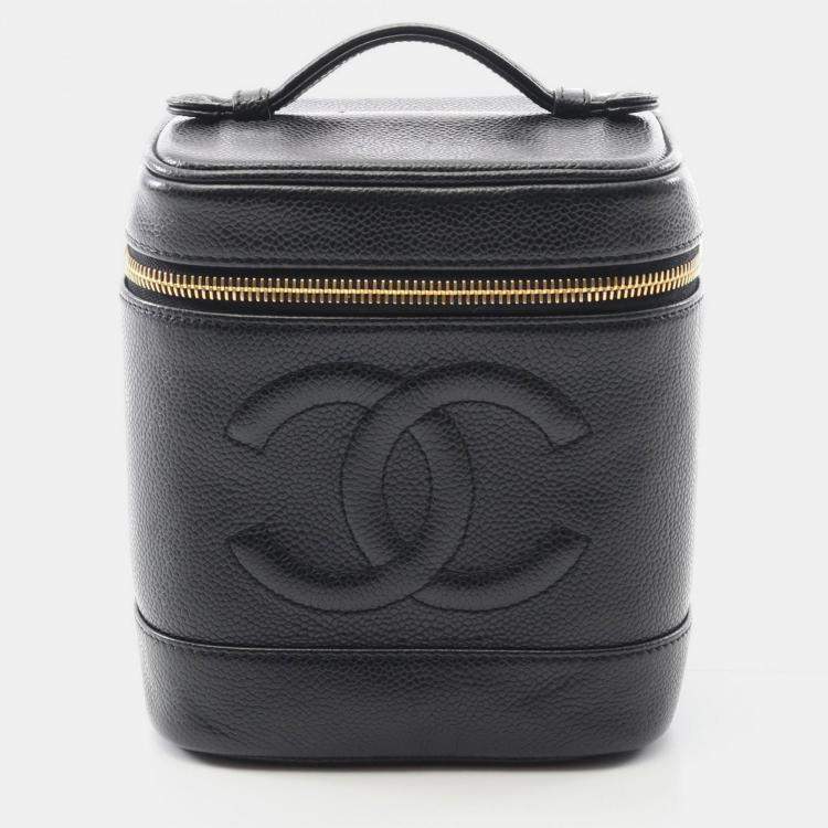 Chanel Cc Logo Vanity Handbag Calfskin Black Ghw Coco