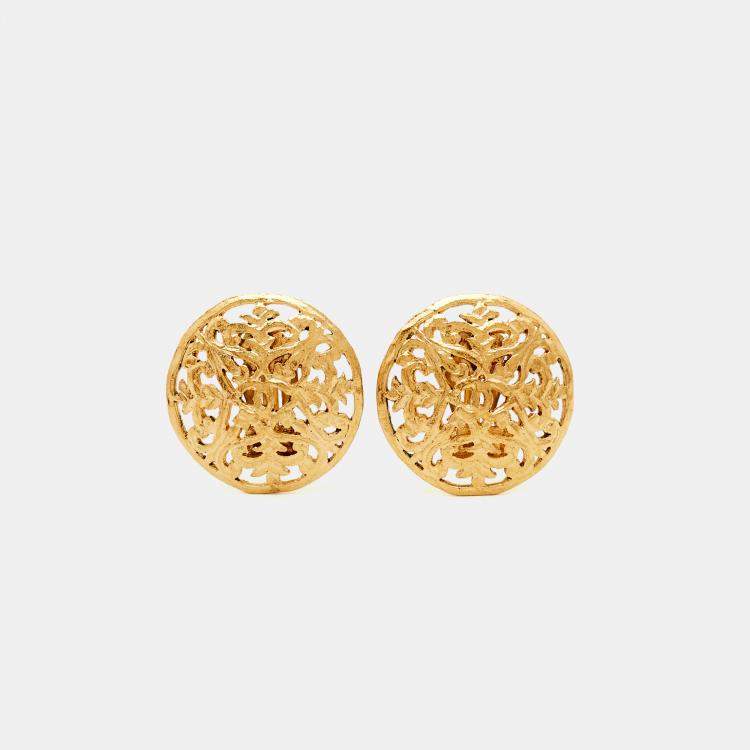 Chanel CC Vintage Gold Tone Round Clip Earrings