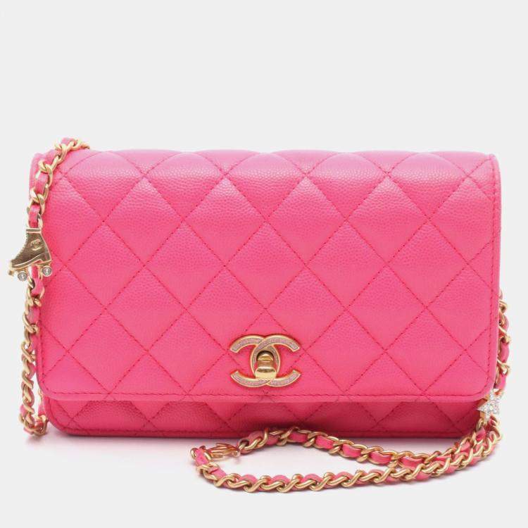 Pre Owned Chanel Classic Pink Leather Wallet on Chain