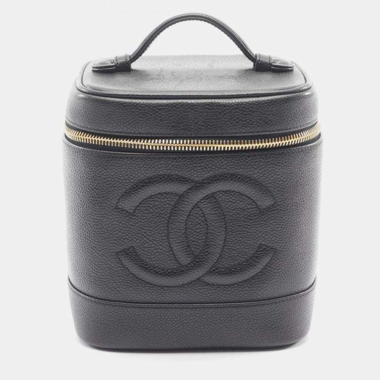 Pre Owned Chanel Coco Mark Vanity Handbag Calfskin Leather Black