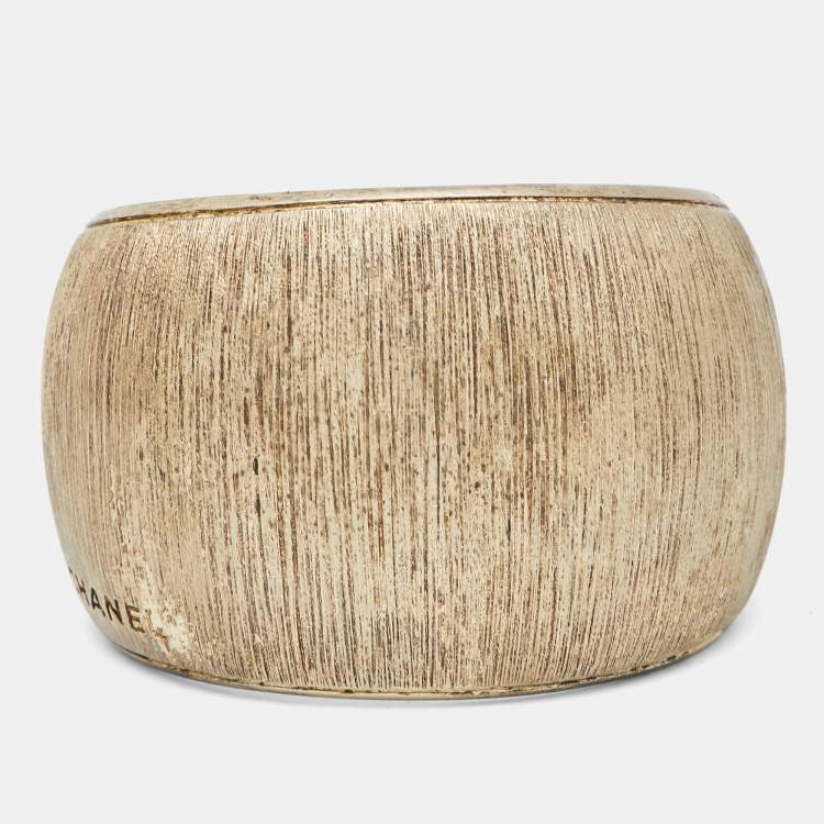 Pre Owned Chanel Enamel Gold Tone Cuff Bracelet