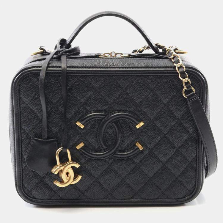 Chanel Filigree Black Leather Vanity Shoulder Bag