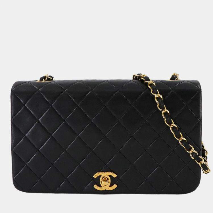 Chanel Full Flap Turnlock Black Leather Shoulder Bag
