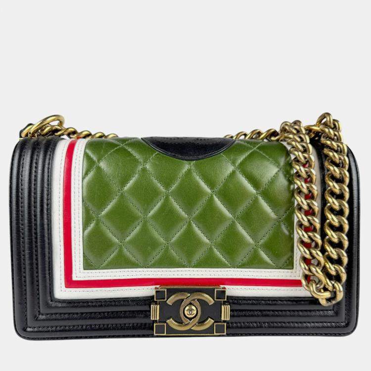 Chanel Green Black Leather Boy Chain Shoulder Bag