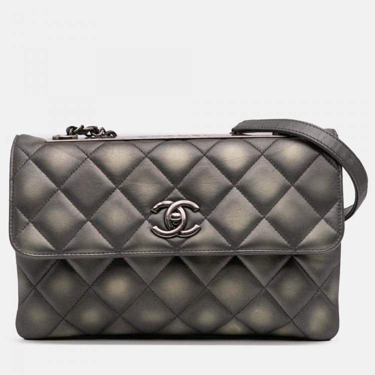 Pre Owned Chanel Grey Quilted Metallic Lambskin Trendy CC Flap