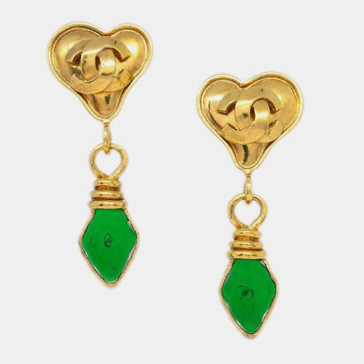 Pre Owned Chanel Gripoix Heaart Earrings Clip-On Gold 95P