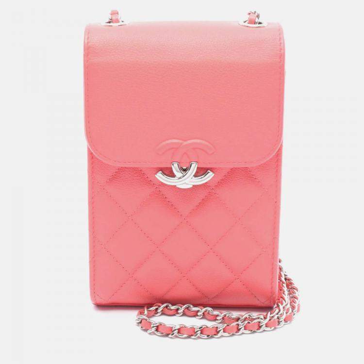 Pre Owned Chanel Half CC Logo Matelasse Red Calfskin Phone Case Chain Shoulder Bag
