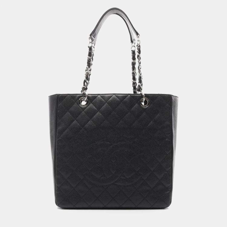 Chanel Matelasse Black Grained Calfskin CC Chain Tote Bag