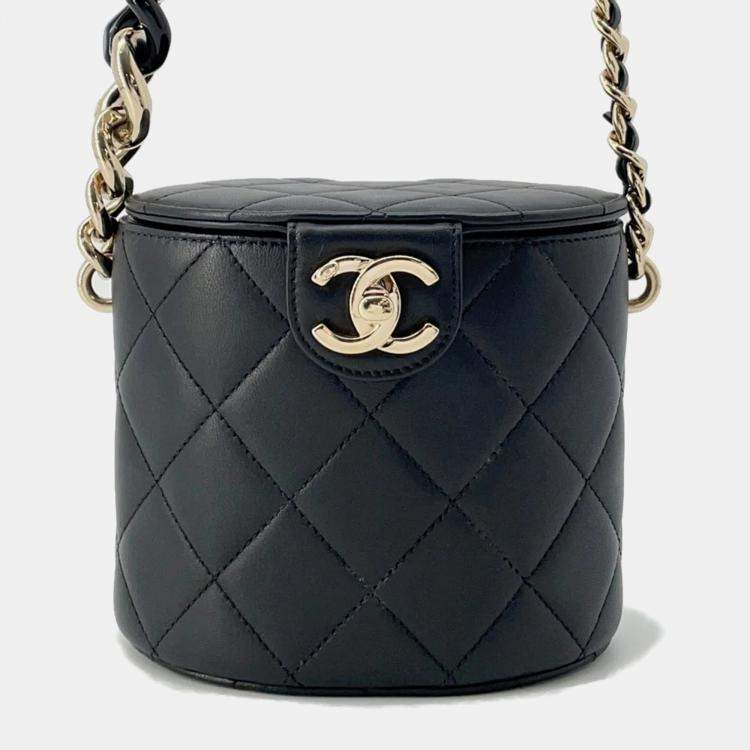Chanel Matelasse Black Lambskin Chain Vanity Bag