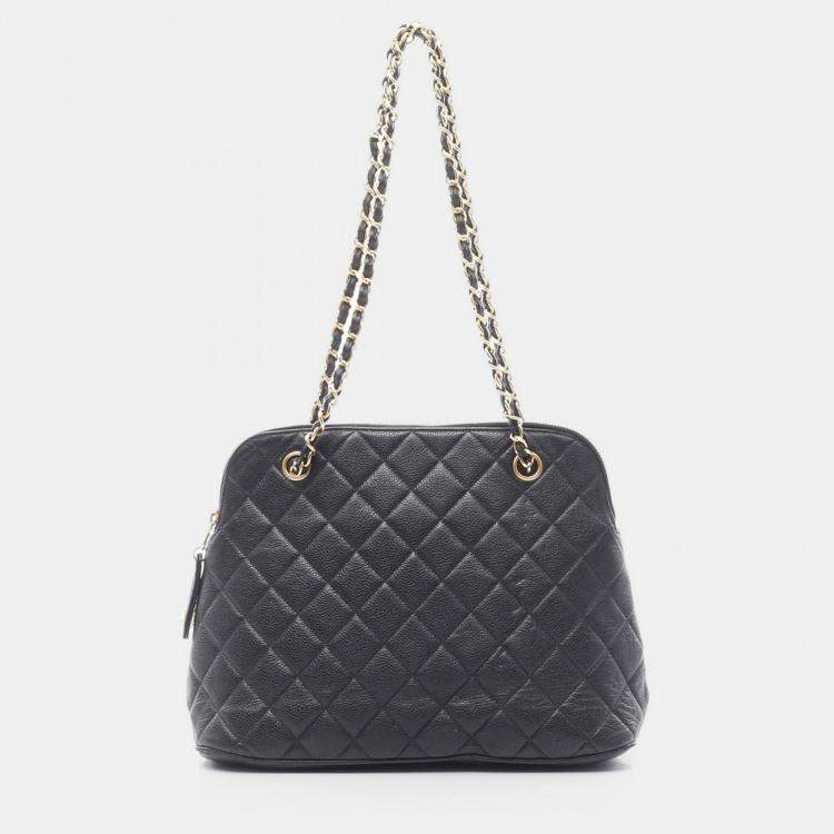 Chanel Matelasse Chain Tote Shoulder Bag Calfskin Leather Black Ghw