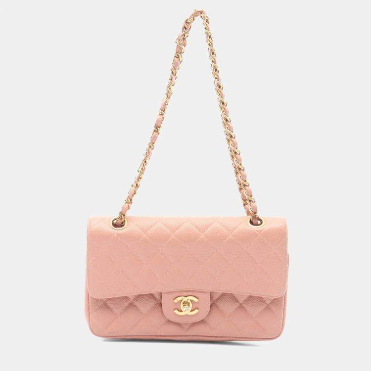 Chanel Matelasse Double Flap Chain Shoulder Bag Calfskin Pink