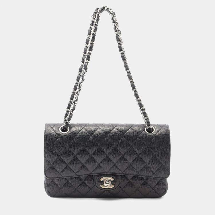 Chanel Matelasse W Flap Chain Shoulder Bag Leather Black