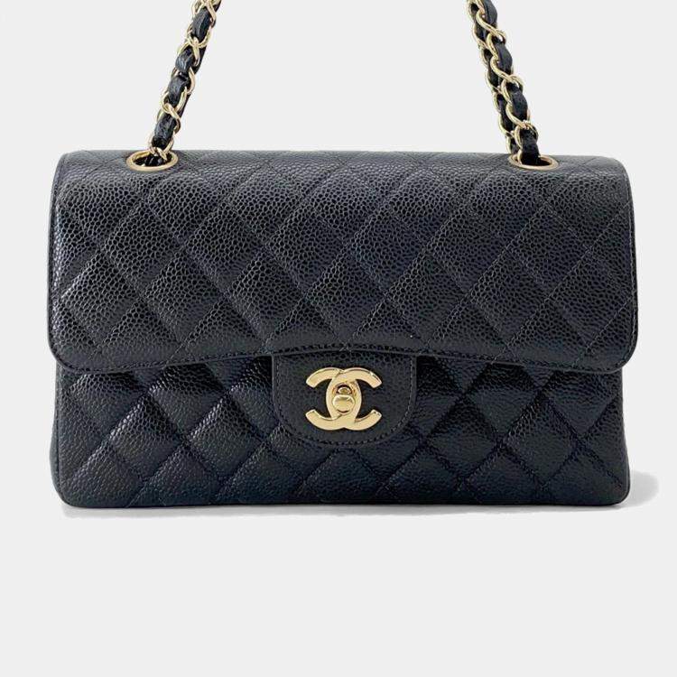 Chanel Matelasse W Flap W Black Caviar Leather Chain Shoulder Bag 23