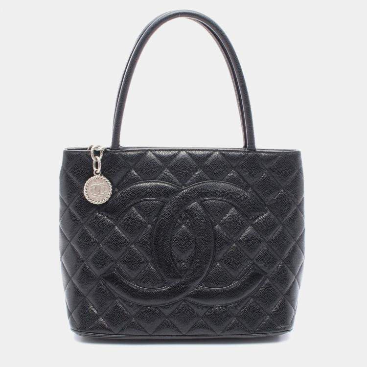 Pre Owned Chanel Medallion Black Leather Tote Bag