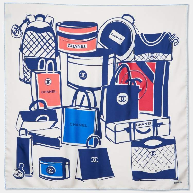 Pre Owned Chanel Cream Luggage Print Silk Square Scarf