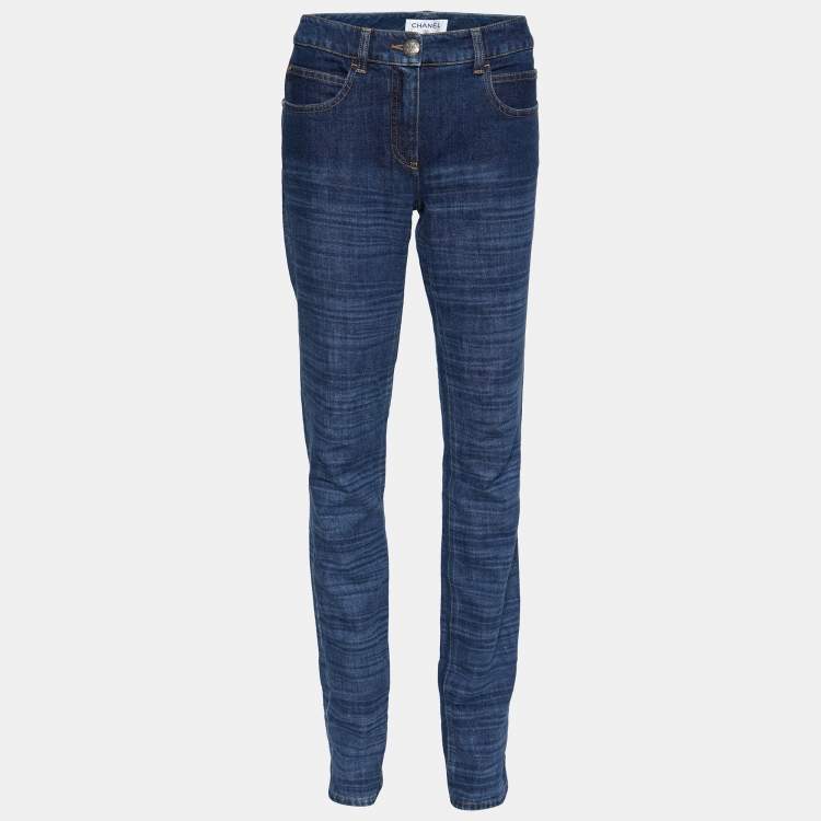 Chanel Navy Blue Denim Logo Embroidered Pocket Detail Jeans M Waist 32"