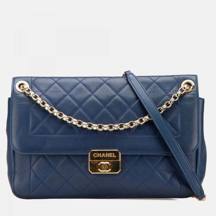 Pre Owned Chanel Navy Blue Large Lambskin Chic With Me Flap
