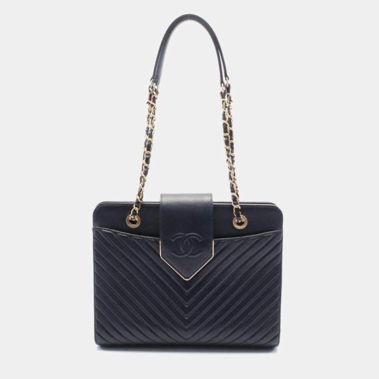 Chanel Navy Chevron Leather V-Stitch Tote Bag