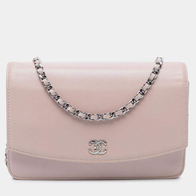 Chanel Pink CC Caviar Sevruga Wallet On Chain